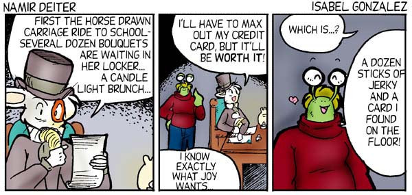 Namir Deiter is © Isabel Marks, 1999-2012. Do not distribute any images on this site without the artist's permission and without giving credit to the Isabel Marks (including a link back to https://namirdeiter.com). Namir Deiter has been on the web since November 1999 and usually updates Monday, Wednesday, and Friday at around midnight PST.