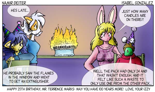Namir Deiter is © Isabel Marks, 1999-2012. Do not distribute any images on this site without the artist's permission and without giving credit to the Isabel Marks (including a link back to https://namirdeiter.com). Namir Deiter has been on the web since November 1999 and usually updates Monday, Wednesday, and Friday at around midnight PST.