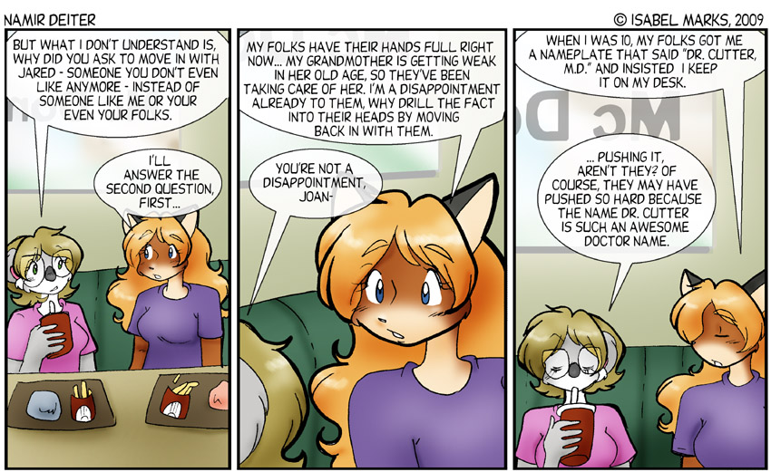 Namir Deiter is © Isabel Marks, 1999-2012. Do not distribute any images on this site without the artist's permission and without giving credit to the Isabel Marks (including a link back to https://namirdeiter.com). Namir Deiter has been on the web since November 1999 and usually updates Monday, Wednesday, and Friday at around midnight PST.