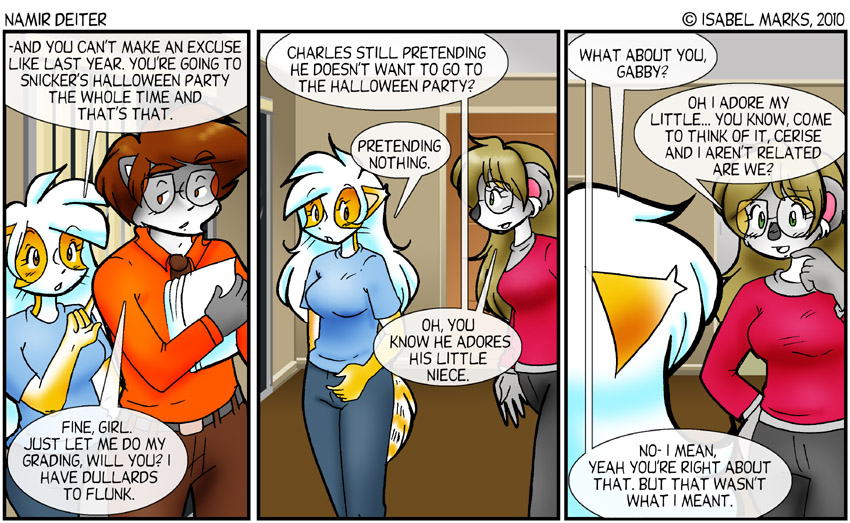 Namir Deiter is © Isabel Marks, 1999-2012. Do not distribute any images on this site without the artist's permission and without giving credit to the Isabel Marks (including a link back to https://namirdeiter.com). Namir Deiter has been on the web since November 1999 and usually updates Monday, Wednesday, and Friday at around midnight PST.