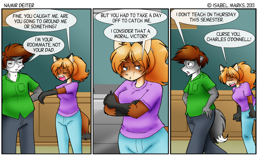 Namir Deiter is © Isabel Marks, 1999-2012. Do not distribute any images on this site without the artist's permission and without giving credit to the Isabel Marks (including a link back to https://namirdeiter.com). Namir Deiter has been on the web since November 1999 and usually updates Monday, Wednesday, and Friday at around midnight PST.