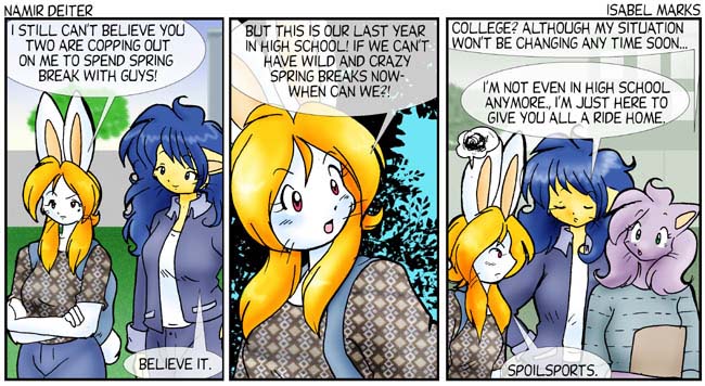 Namir Deiter is © Isabel Marks, 1999-2012. Do not distribute any images on this site without the artist's permission and without giving credit to the Isabel Marks (including a link back to https://namirdeiter.com). Namir Deiter has been on the web since November 1999 and usually updates Monday, Wednesday, and Friday at around midnight PST.