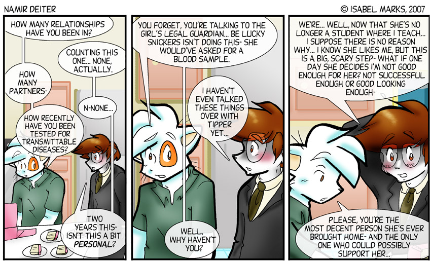 | Namir Deiter is © Isabel Marks, 1999-2012. Do not distribute any images on this site without the artist's permission and without giving credit to the Isabel Marks (including a link back to https://namirdeiter.com). Namir Deiter has been on the web since November 1999 and usually updates Monday, Wednesday, and Friday at around midnight PST.
