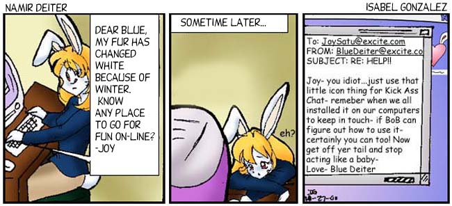 Namir Deiter is © Isabel Marks, 1999-2012. Do not distribute any images on this site without the artist's permission and without giving credit to the Isabel Marks (including a link back to https://namirdeiter.com). Namir Deiter has been on the web since November 1999 and usually updates Monday, Wednesday, and Friday at around midnight PST.