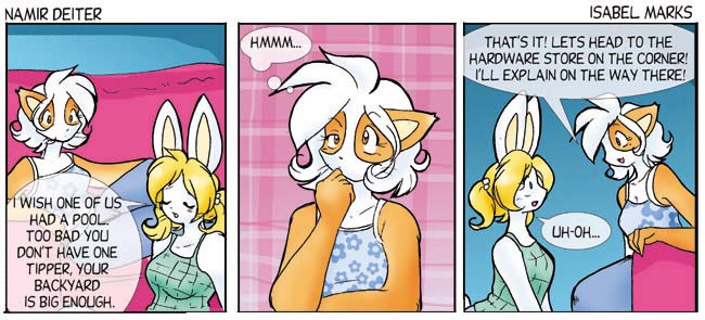 Namir Deiter is © Isabel Marks, 1999-2012. Do not distribute any images on this site without the artist's permission and without giving credit to the Isabel Marks (including a link back to https://namirdeiter.com). Namir Deiter has been on the web since November 1999 and usually updates Monday, Wednesday, and Friday at around midnight PST.