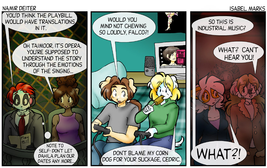 | Namir Deiter is © Isabel Marks, 1999-2012. Do not distribute any images on this site without the artist's permission and without giving credit to the Isabel Marks (including a link back to https://namirdeiter.com). Namir Deiter has been on the web since November 1999 and usually updates Monday, Wednesday, and Friday at around midnight PST.