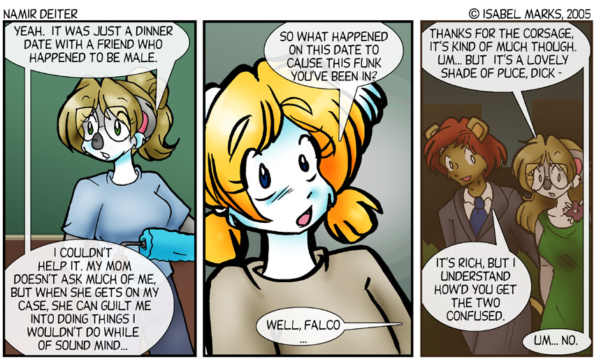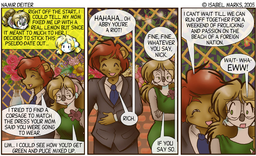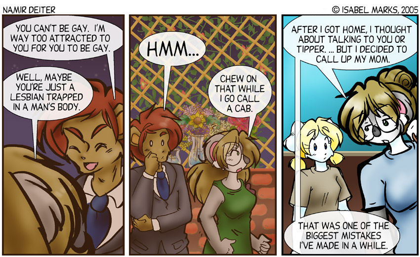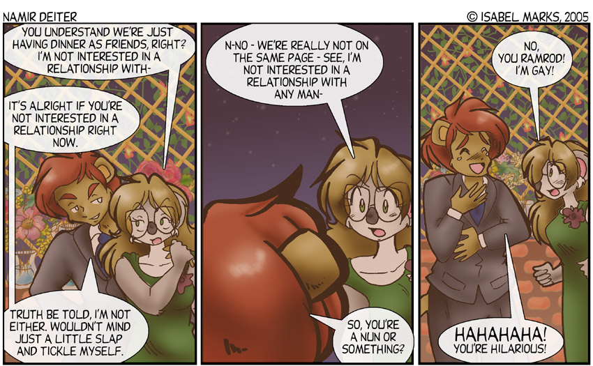 | Namir Deiter is © Isabel Marks, 1999-2012. Do not distribute any images on this site without the artist's permission and without giving credit to the Isabel Marks (including a link back to https://namirdeiter.com). Namir Deiter has been on the web since November 1999 and usually updates Monday, Wednesday, and Friday at around midnight PST.