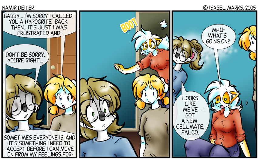 Namir Deiter is © Isabel Marks, 1999-2012. Do not distribute any images on this site without the artist's permission and without giving credit to the Isabel Marks (including a link back to https://namirdeiter.com). Namir Deiter has been on the web since November 1999 and usually updates Monday, Wednesday, and Friday at around midnight PST.
