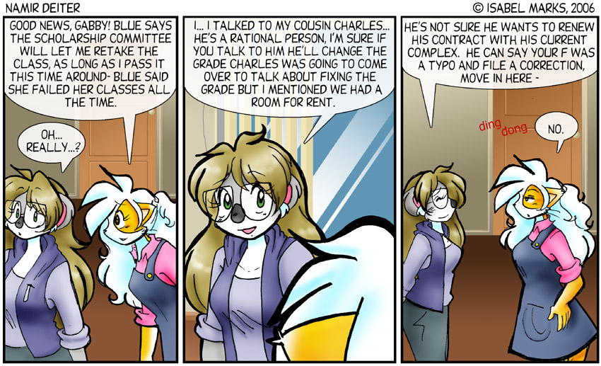 | Namir Deiter is © Isabel Marks, 1999-2012. Do not distribute any images on this site without the artist's permission and without giving credit to the Isabel Marks (including a link back to https://namirdeiter.com). Namir Deiter has been on the web since November 1999 and usually updates Monday, Wednesday, and Friday at around midnight PST.