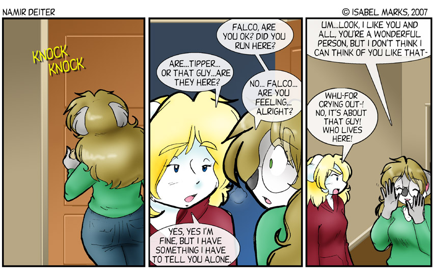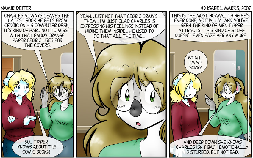 Namir Deiter is © Isabel Marks, 1999-2012. Do not distribute any images on this site without the artist's permission and without giving credit to the Isabel Marks (including a link back to https://namirdeiter.com). Namir Deiter has been on the web since November 1999 and usually updates Monday, Wednesday, and Friday at around midnight PST.