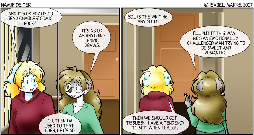 | Namir Deiter is © Isabel Marks, 1999-2012. Do not distribute any images on this site without the artist's permission and without giving credit to the Isabel Marks (including a link back to https://namirdeiter.com). Namir Deiter has been on the web since November 1999 and usually updates Monday, Wednesday, and Friday at around midnight PST.