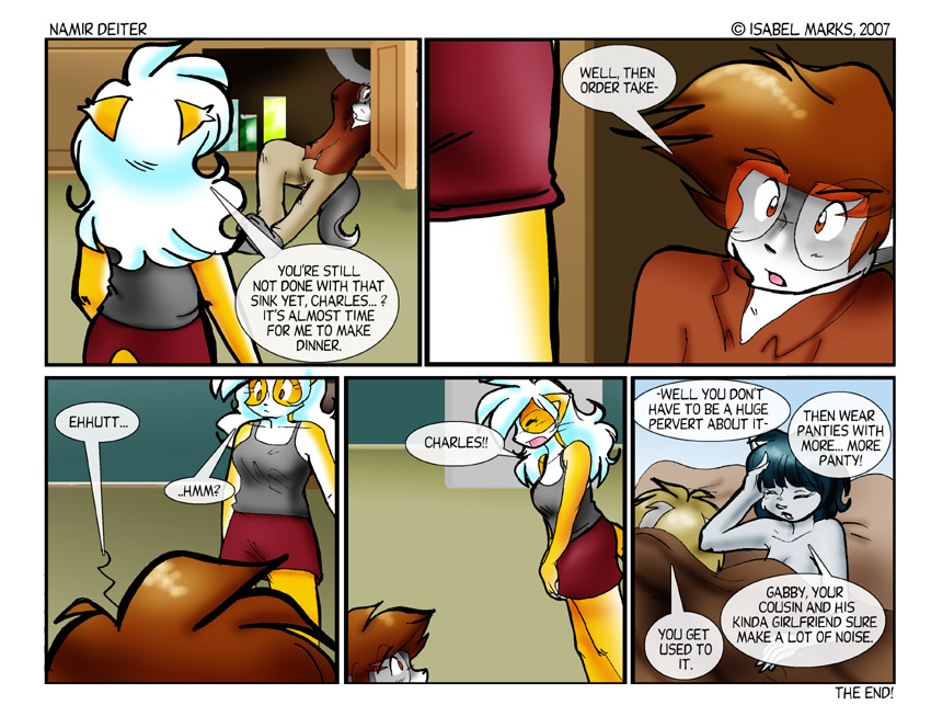 Namir Deiter is © Isabel Marks, 1999-2012. Do not distribute any images on this site without the artist's permission and without giving credit to the Isabel Marks (including a link back to https://namirdeiter.com). Namir Deiter has been on the web since November 1999 and usually updates Monday, Wednesday, and Friday at around midnight PST.