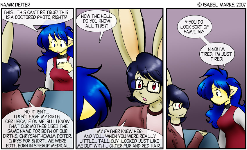 | Namir Deiter is © Isabel Marks, 1999-2012. Do not distribute any images on this site without the artist's permission and without giving credit to the Isabel Marks (including a link back to https://namirdeiter.com). Namir Deiter has been on the web since November 1999 and usually updates Monday, Wednesday, and Friday at around midnight PST.