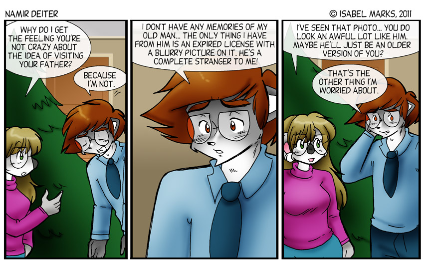 Namir Deiter is © Isabel Marks, 1999-2012. Do not distribute any images on this site without the artist's permission and without giving credit to the Isabel Marks (including a link back to https://namirdeiter.com). Namir Deiter has been on the web since November 1999 and usually updates Monday, Wednesday, and Friday at around midnight PST.