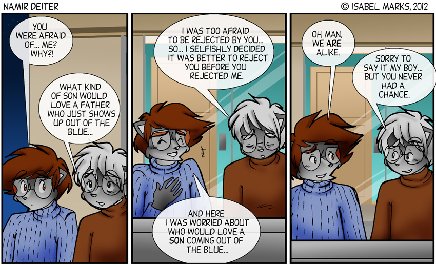 | Namir Deiter is © Isabel Marks, 1999-2012. Do not distribute any images on this site without the artist's permission and without giving credit to the Isabel Marks (including a link back to https://namirdeiter.com). Namir Deiter has been on the web since November 1999 and usually updates Monday, Wednesday, and Friday at around midnight PST.