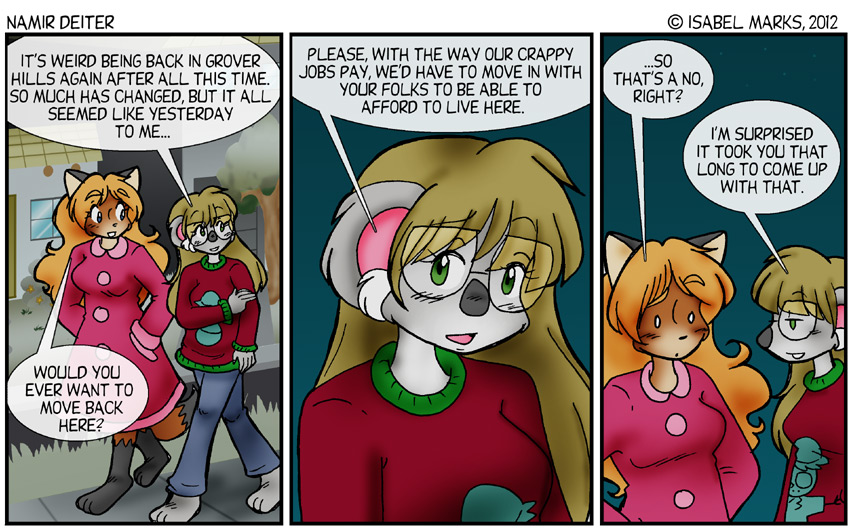 Namir Deiter is © Isabel Marks, 1999-2012. Do not distribute any images on this site without the artist's permission and without giving credit to the Isabel Marks (including a link back to https://namirdeiter.com). Namir Deiter has been on the web since November 1999 and usually updates Monday, Wednesday, and Friday at around midnight PST.
