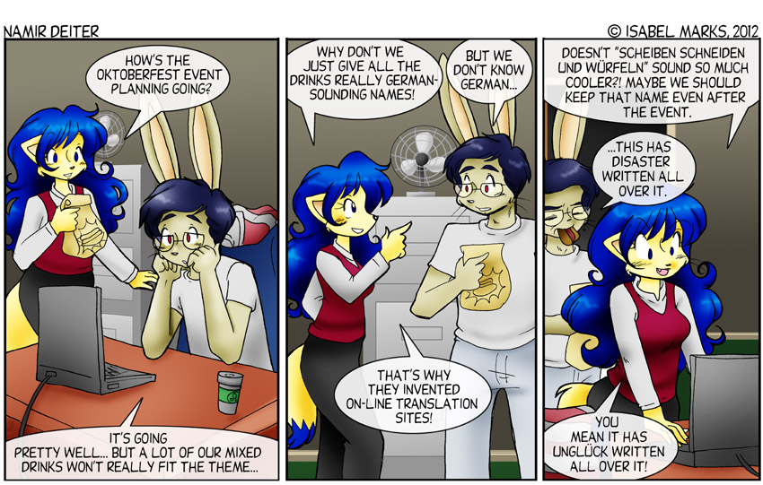 Namir Deiter is © Isabel Marks, 1999-2012. Do not distribute any images on this site without the artist's permission and without giving credit to the Isabel Marks (including a link back to https://namirdeiter.com). Namir Deiter has been on the web since November 1999 and usually updates Monday, Wednesday, and Friday at around midnight PST.