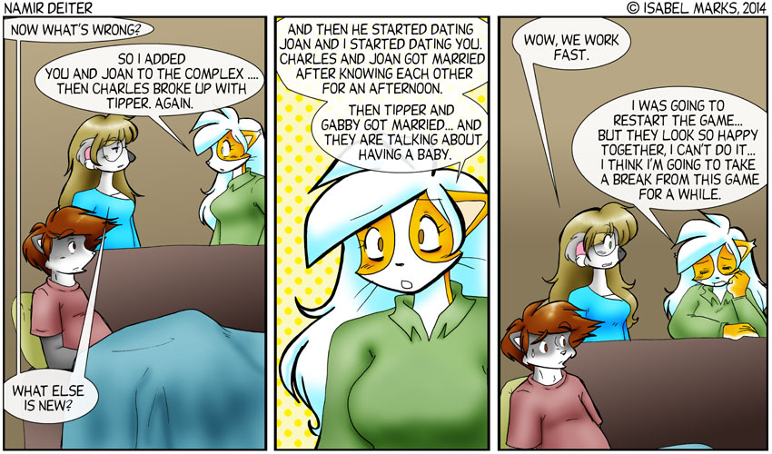 | Namir Deiter is © Isabel Marks, 1999-2012. Do not distribute any images on this site without the artist's permission and without giving credit to the Isabel Marks (including a link back to https://namirdeiter.com). Namir Deiter has been on the web since November 1999 and usually updates Monday, Wednesday, and Friday at around midnight PST.